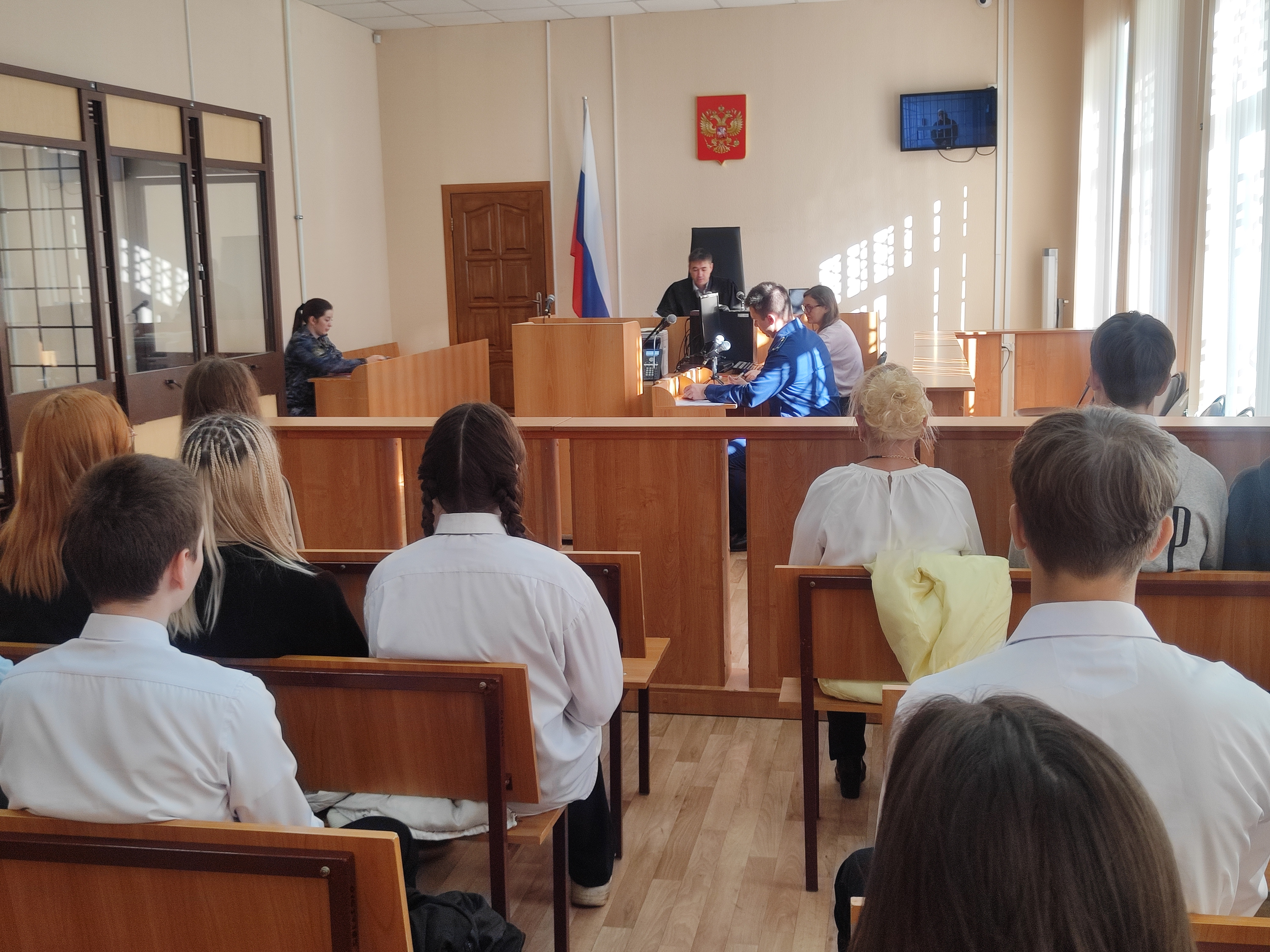 В целях реализации Концепции сопровождения самоопределения и профессиональной ориентации обучающихся образовательных организаций Удмуртской Республики, 23 сентября 2025 года помощником судьи Герасимовой Ю.С. проведена экскурсия в здании Сарапульского городского суда для учащихся 9 «б» класса МБОУ СОШ №23. Экскурсия началась со знакомства с правилами пропускного режима в здание суда, постом судебных приставов, оборудованным техникой по обеспечению безопасности суда, а также правилами поведения в здании суда и в судебном заседании. В ходе обзорной экскурсии по зданию суда школьники посетили приемную суда, побывали в зале судебного заседания, где рассматривают гражданские и уголовные дела. В зале судебного заседания ребятам рассказали, где во время заседания располагается судья, государственный обвинитель (прокурор), защитник (адвокат), истец и ответчик, потерпевшие, свидетели, а также, где содержится подсудимый, находящийся под стражей. В ходе живого диалога помощник судьи ответила на все интересующие ребят вопросы, касающиеся деятельности суда. Ребятам была предоставлена возможность присутствовать на судебном заседании, в ходе которого судьей Сарапульского городского суда Князевым Д.М. было рассмотрено ходатайство осужденной об условно-досрочном освобождении от отбывания наказания в виде лишения свободы, с использованием системы видео-конференц связи. Школьников познакомили с современными технологиями, которые суды используют в своей работе — таких как видео-конференц связь и система аудиопротоколирования. В завершение встречи помощник судьи подробно рассказала о структуре суда, специфике работы в суде. Ребята, посетившие экскурсию — ученики 9 класса, которым уже пора задуматься о выборе будущей профессии. Экскурсия позволила учащимся 9 класса познакомиться со спецификой юридической профессии. Они разобрались в полномочиях судьи и узнали о требованиях, которые предъявляют к кандидатам на эту должность. Узнали о должностных обязанностях секретаря судебного заседания и помощника судьи.